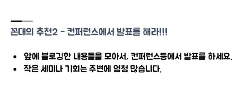 개발자는 발표를 무조건 해야한다는 이야기가 아니며, 발표를 해야 좋은 개발자라는 이야기도 아닙니다. 그러나 발표를 하는 개발자는 분명 더 많은 경험을 할 수 있는 개발자라는 것은 꼭 말하고 싶었습니다.